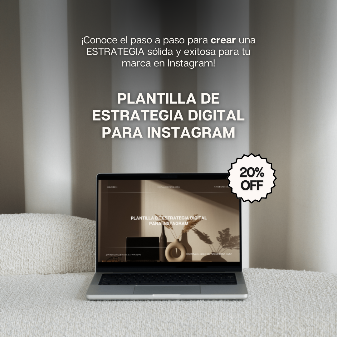Disfruta de un 20% OFF en la compra de tu Plantilla de Estrategia Digital para Instagram.